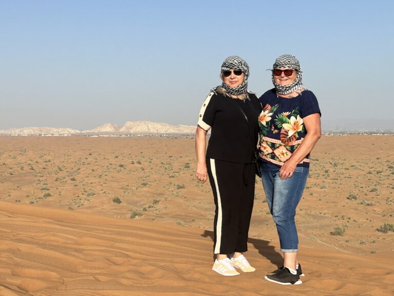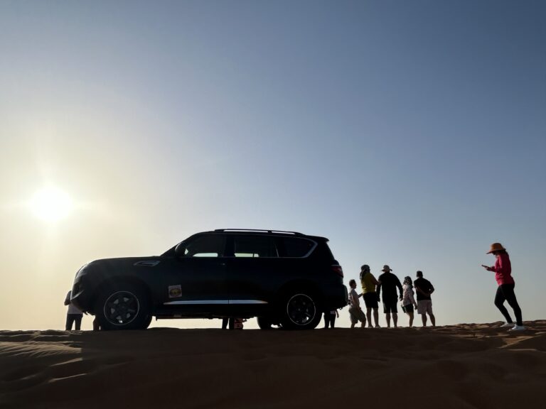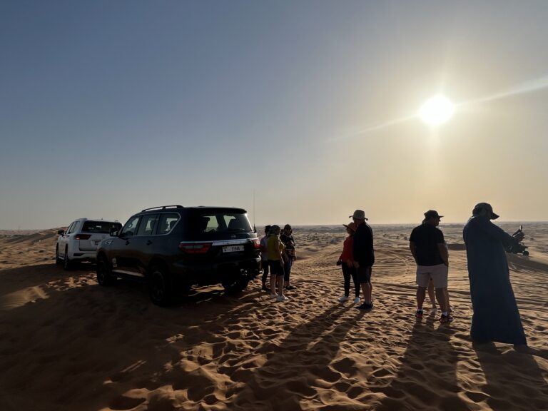 O primeiro passeio da viagem aconteceu somente de tarde, quando fizemos um safari pelo deserto do emirado de Sharjah em SUVs 4×4. No fim do dia seguimos para o deserto de outro emirado, Dubai, onde jantamos ao ar livre.