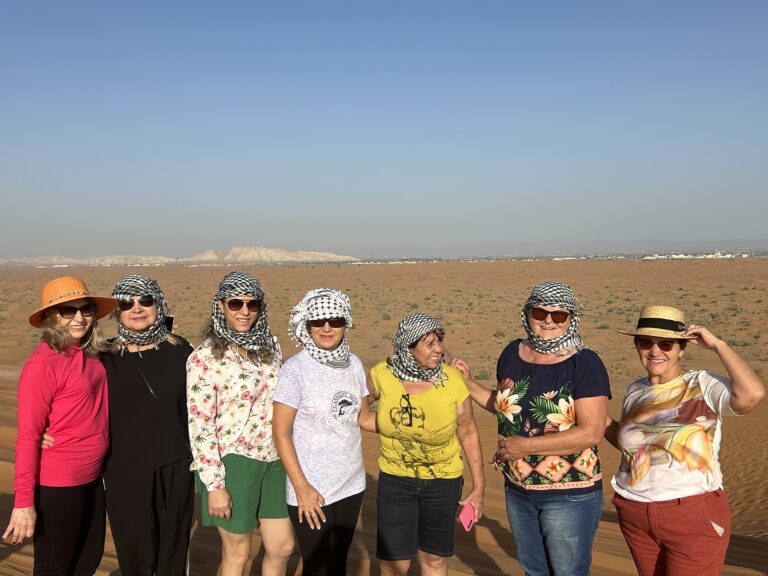 Gente de Deus, não reconheci quase ninguém. Esse grupo está chick demais, esnobando beleza nos Emirados Árabes. As fotos do pôr do sol ficaram muito lindas. Estou até desconfiado que o sol tratou logo de se esconder para não perder o brilho diante da beleza dessa mulherada com os lenços na cabeça, (acho que é shemagh ou Kufiya), só que fica difícil reconhecer quem é quem, acho até que infiltraram algumas mulheres árabes no grupo de disseram que são as brasileiras.