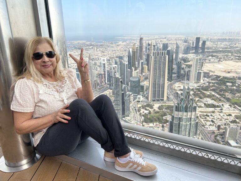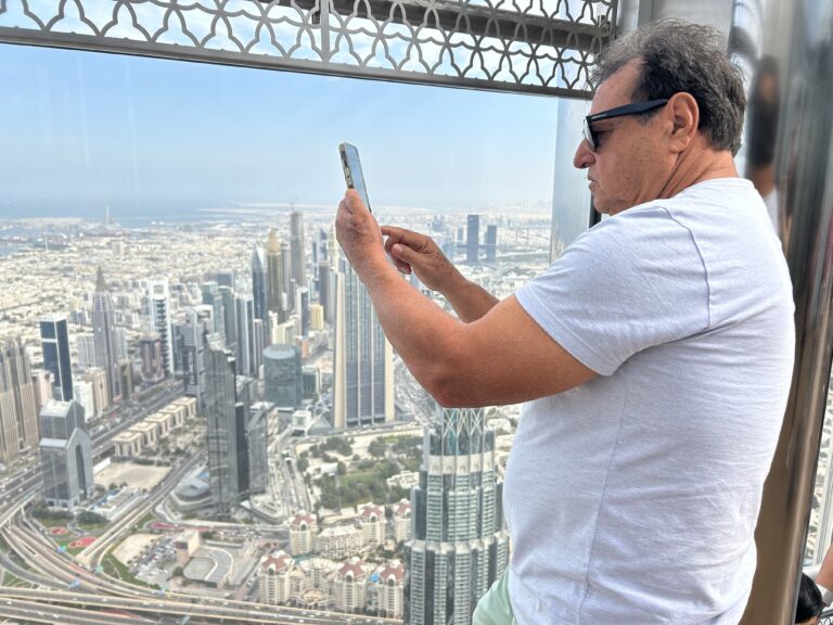 Mas este não foi o único passeio do dia. Antes subimos até o 125º andar do prédio mais alto do mundo, o Burj Khalifa, que tem 828 metros e 163 andares, para ver Dubai de cima. Foi uma experiência incrível que compartilhamos com vocês agora. Também tem fotos inéditas nas nossas mídias sociais Facebook e Instagram. Segue a gente lá pra não perder nada 😉