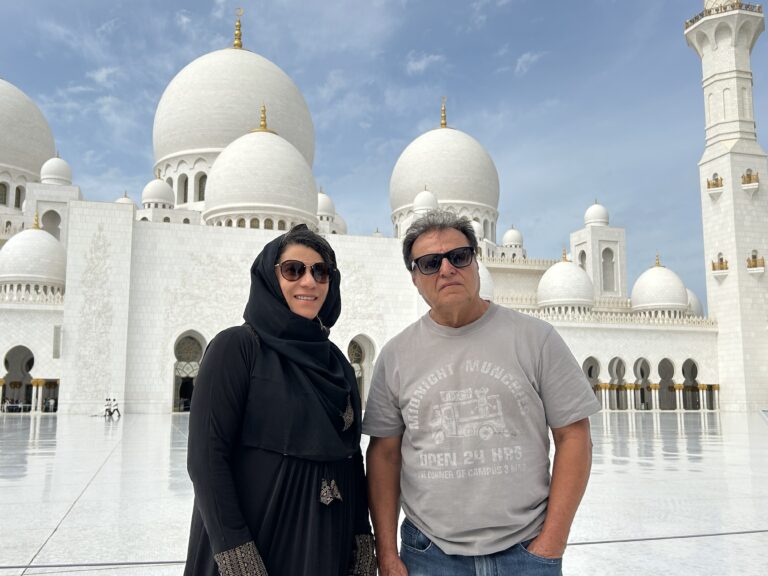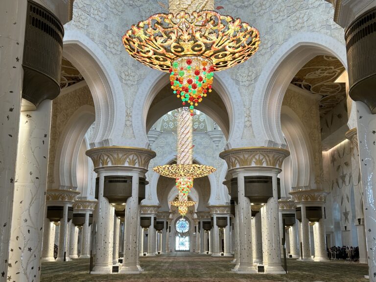 Olá povo. Hoje nos despedimos de Dubai e seguimos para a capital dos Emirados Árabes Unidos, Abu Dhabi, onde fizemos dois passeios ótimos. O primeiro foi na Grande Mesquita do Sheikh Zayed, que é terceira maior em extensão do mundo depois de Meca e Medina, ambas na Arábia Saudita. Construída toda em mármore carrara, ela pode abrigar 40 mil fiéis. Algo que ocorre durante o ramadã.
