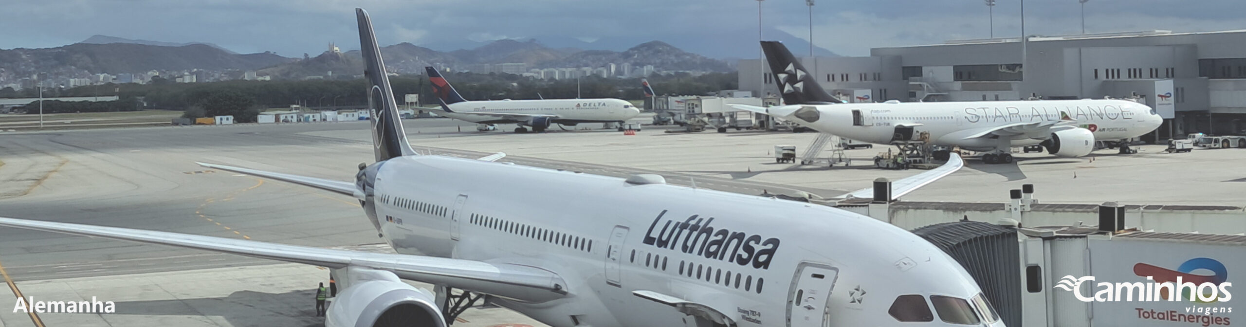 Conexão em Frankfurt. Refeições e pernoite a bordo do avião.